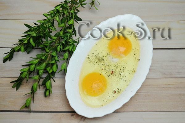 Збиваємо яйця, кинувши в тарілку маленькі щіпки солі та прянощів.
