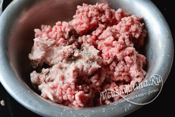 1. Грудинку ретельно вимийте і наріжте невеликими шматками. Перемеліть м’ясо разом із нарізаною часточкою цибулею. Приправте фарш перцем, додайте на смак сіль, ретельно перемішайте і відбийте про миску.