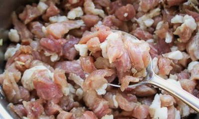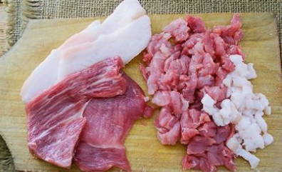 - Свиняче сало потрібно очистити від шкірки та нарізати дрібними кубиками.