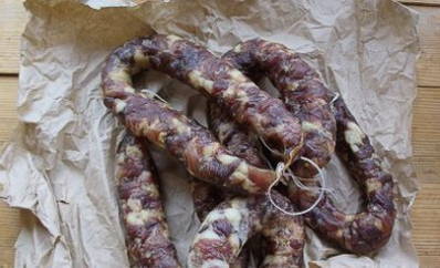 - Зав’язуємо ковбасу кільцем і залишаємо на 5 днів у приміщенні, що провітрюється. Вдень продукт слід тримати у теплі, а вночі у холоді.
