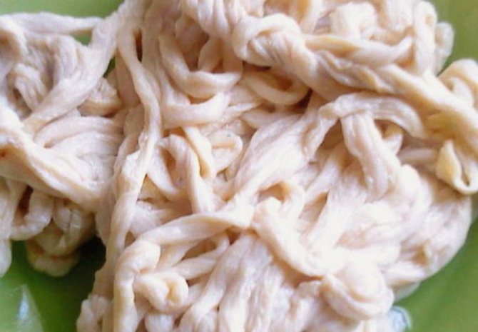 - Натискаючи на пляшку, потрібно видавлювати акуратні ковбаски середньої довжини, розміщуючи їх на поверхні, присипаною мукою.