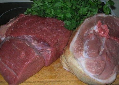 - Найкраще звернути увагу на поєднання “свинина-яловичина”. Яловиче м’ясо має безліч волокон, які утримують форму страви в процесі термічної обробки, а свинина просочує жиром і смаком яловичину, роблячи продукт соковитим.