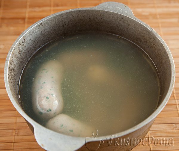 Потім опускаємо туди ковбаски на 10-15 хвилин.