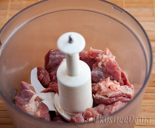- Заздалегідь розморожуємо та промиваємо свинину з яловичиною. Ріжемо м’ясо на невеликі шматочки.