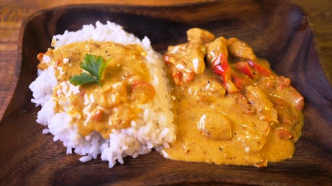 Каррі з куркою в томатному соусі з вершками.