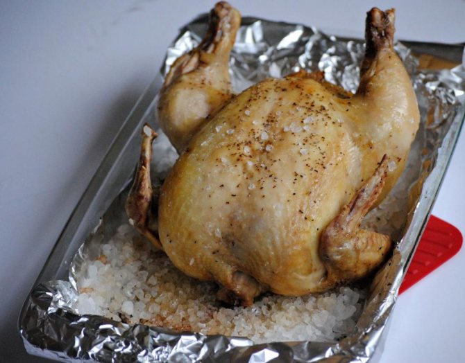Особливості запікання курки на солі, температура та час приготування в духовці