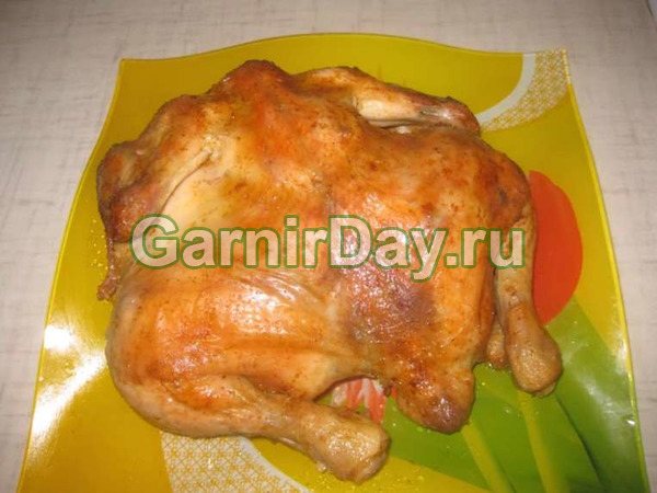 - За бажанням тушку можна розрізати по спинці вздовж навпіл і розкрити її як курча тютюну. Так курочка пропечеться швидше і рівномірніше.