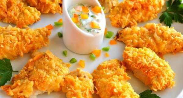 | Якщо паніровка готується самостійно (з чіпсів або кукурудзяних пластівців), її потрібно подрібнювати якісно. | Якщо панування буде велике, то м’ясні соки можуть витекти, а також страву буде незручно вживати. |