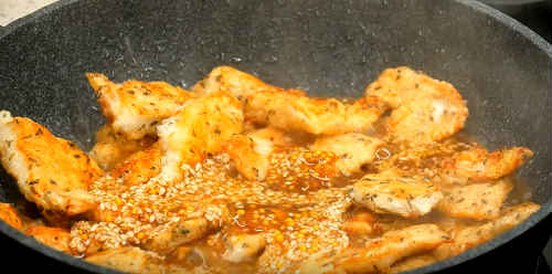 7. Сковороду змастіть олією, добре прогрійте, зменшіть вогонь і обсмажуйте куряче філе з кожної зі сторін до повної готовності.