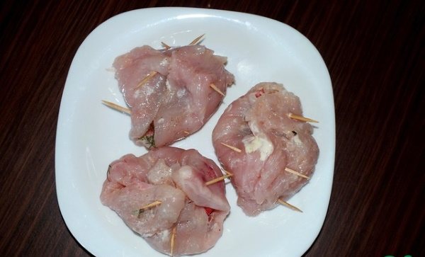 Приготування: Шматок курячого філе викладаємо у харчову плівку (можна використовувати у разі відсутності звичайний одноразовий мішечок).