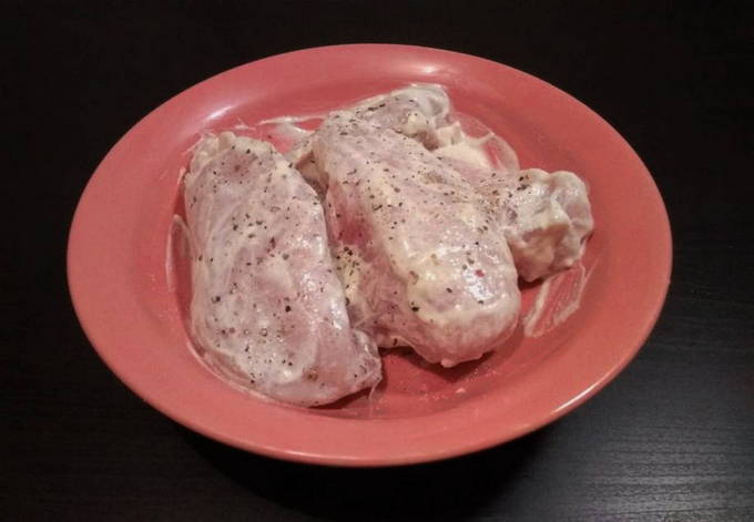 - Після цього необхідно вимити 2 філе курки, висушити і нагріти духову шафу до 180°С.