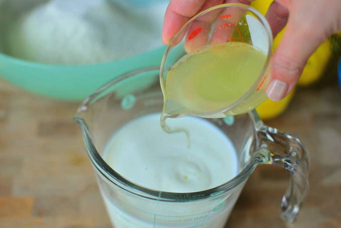 - Нам знадобиться глибока ємність для приготування соусу. Наливаємо в миску вершки, потім відправляємо лимонний сік. Злегка перемішуємо, щоб вершки стали густими.
