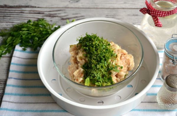 4. Перед запіканням додайте до компонентів яйце, зелень.