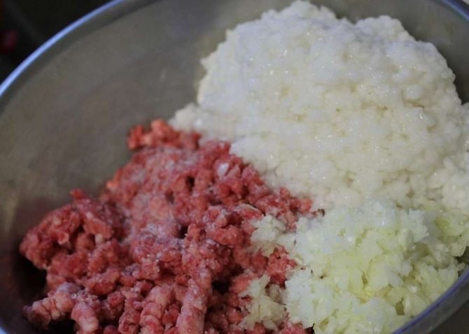 3. Додайте до м’яса овочі, молоко, сіль, манну крупу, спеції. Залиште на годину інгредієнти, щоб вони насочилися соком один одного, а манка розбухла.