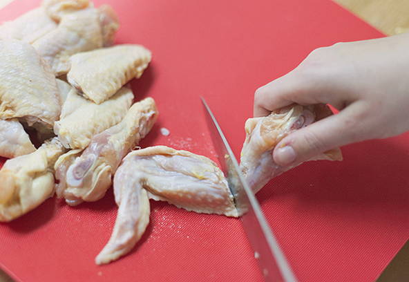 Спершу потрібно зробити підготовку м’яса. Це нескладний процес, потрібно лише, якщо є необхідність, прибрати залишки пір’я, потім розрізати крильця по суглобах на три частини. Найменший суглоб можна використовувати для запікання, оскільки у ньому практично немає м’яса.