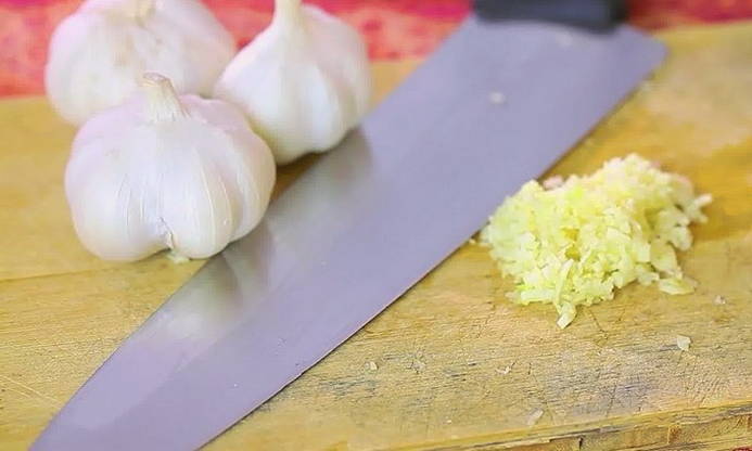 - Часник чистимо і натираємо на дрібну тертку.