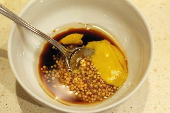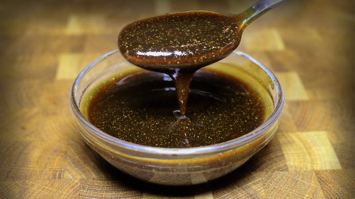 - Мед, що залишився, і соєвий соус змішуємо, перетираючи їх до однорідності.