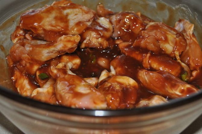 До речі, маринад має досить незвичайний склад, тому що для його приготування потрібно змішати соєвий соус з медом та подрібненим часником. В результаті виходить просто ідеальне змішання смаків (солодкого, солоного та гострого), що надає готовій страві особливої вишуканості та тонкощі.