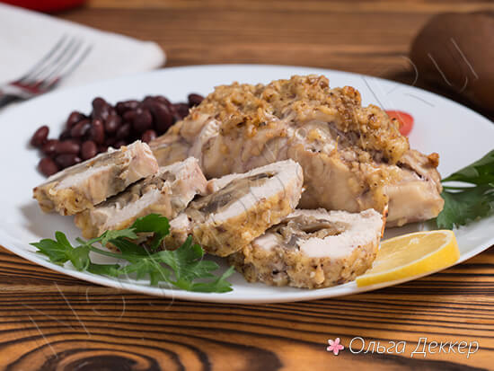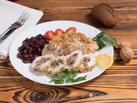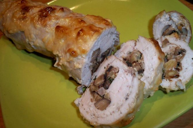 Рулетики з курячої грудки з грибами