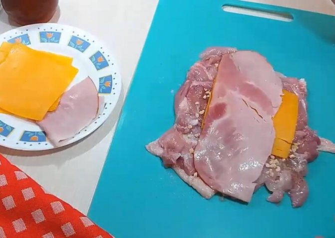 - У центр відбивної кладемо начинку, приблизно столову ложку
