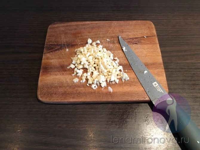 Дрібно подрібнюю часник, так він краще віддасть свій аромат та корисні речовини.