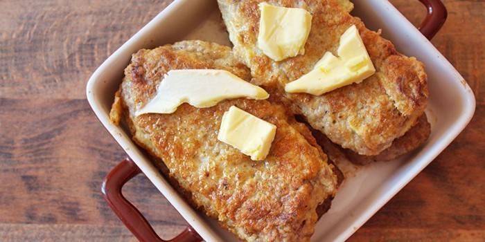 Потім викладають у форму для запікання або на деко, злегка змащене маслом. Можна попередньо загорнути котлети у фольгу, так вони вийдуть ніжнішими та соковитішими, буквально тануть у роті. Страву доповнюють приправами, грибами, овочами, бобовими, сметанним або томатним соусами. Орієнтовний час приготування становить близько півгодини при 170-180 градусах.