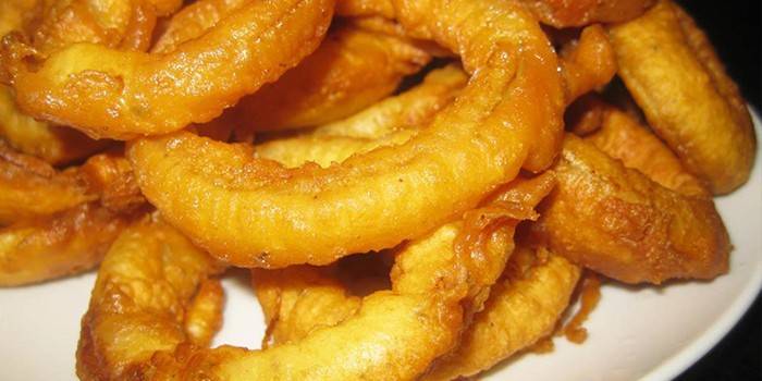 - Після викласти цибулинні кільця в сито, щоб пішов зайвий жир.