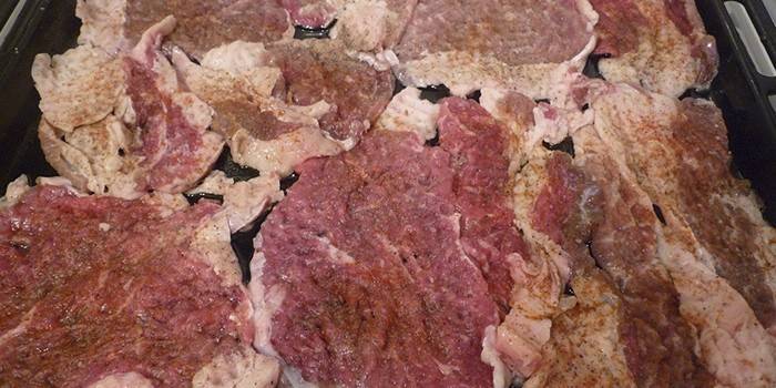 - Слабка прожарювання. Шматочки м’яса (товщиною трохи більше 3 див) обсмажуються на сковороді з двох сторін.