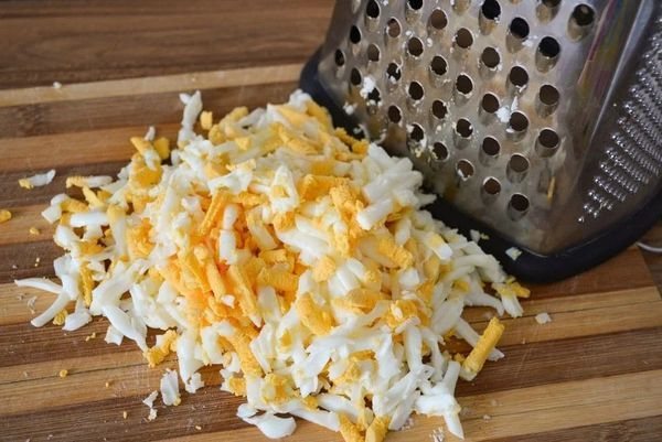 5. Натереть сваренные вкрутую яйца.
