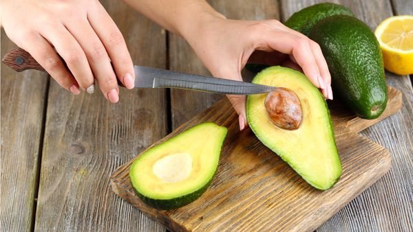 1. Сначала потребуется промыть и разрезать авокадо на 2 части, удалить косточку, очистить кожуру с помощью ножа и выложить мякоть в миску. Авокадо должен быть мягким.
