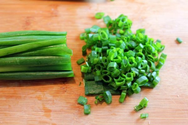 4. Зеленый лук помыть, обсушить и измельчить