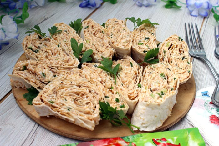 Рулет из лаваша с тунцом консервированным, рецепт