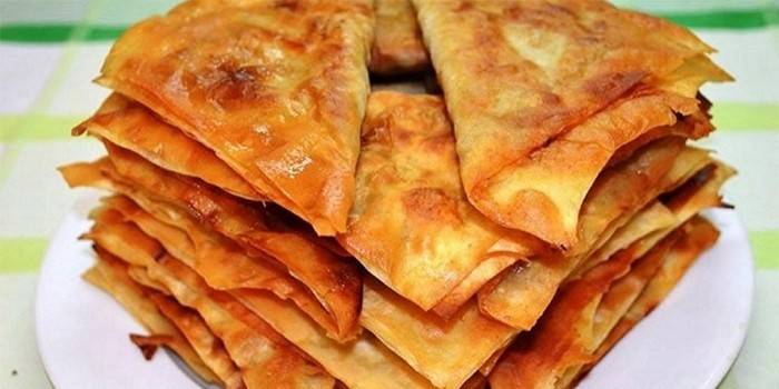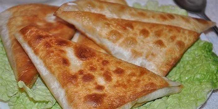 Фарш у лаваші у духовці можна приготувати у вигляді чебуреків. Щоб сформувати продукт, потрібно вирізати із прямокутних листів квадрати за допомогою ножиць. Якщо листи використовуються круглі, їх розділяють на сегменти. Такі чебуреки особливо смачні гарячими. Хрумка апетитна скоринка в холодному продукті втрачає свою красу. Класичні чебуреки готуються з великою кількістю рослинних жирів, що зовсім не до вподоби прихильникам здорової їжі. У цьому спрощеному варіанті продукт запікається в духовці, що набагато корисніше, але не менш смачно.