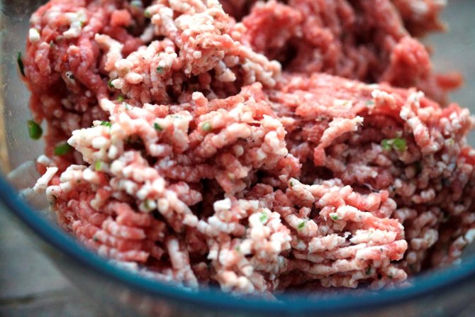 Поки обсмажується цибуля, розминаємо фарш, але солити і перчити вже на сковороді, щоб м’ясо не стало сухим і жорстким. Додаємо фарш на сковороду, коли цибуля набуде золотистого відтінку, при цьому активно перемішуючи його з цибулею. Смажимо близько 5-7 хвилин, за 2-3 хвилини до готовності масу посолити та поперчити.
