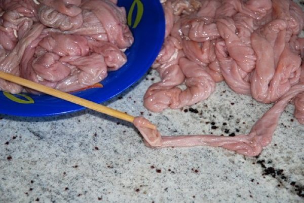 - Якщо застосовуються нутрощі тварини, їх завчасно вимочують у солоній воді, потім осушують.