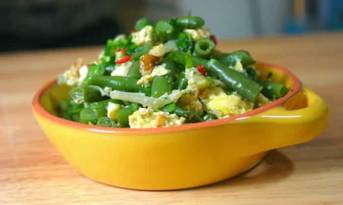 Лобио из зеленой фасоли с яйцом