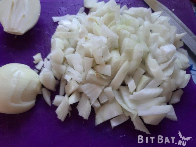 3. Лук чистим от кожуры и нарезаем кусочками.