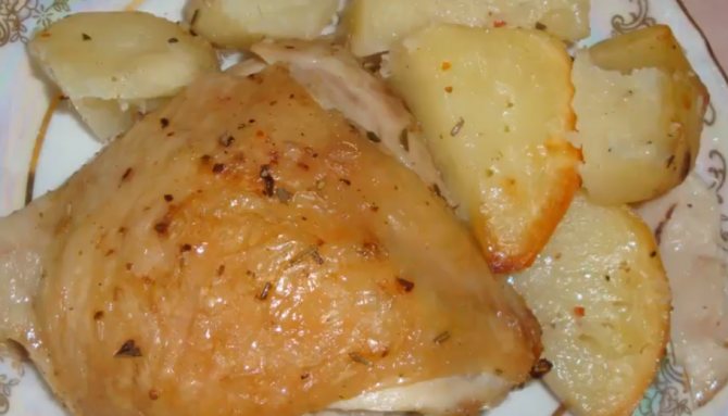 Стегна, запечені з картоплею в рукаві
