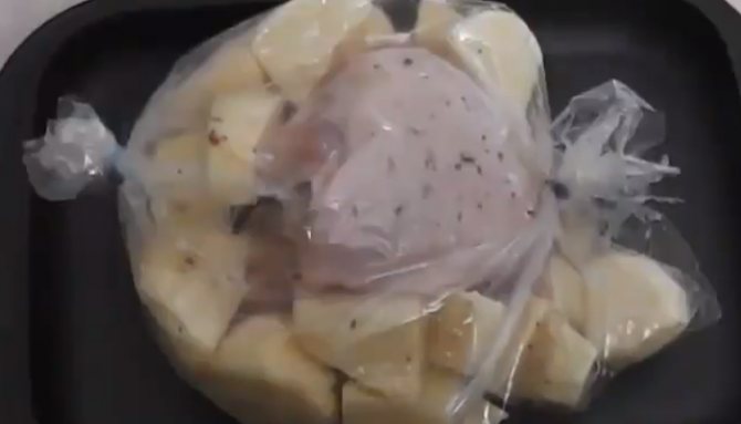 2. Далі упаковуємо продукти в рукав для запікання та перев’язуємо його з обох боків.