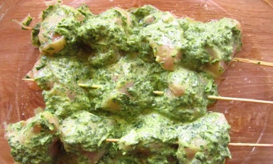 Цей маринад можна назвати мексиканським за часникову гостроту. Любителям гострої їжі він дуже сподобається. У шашличку присутній кінза, сік лайма, пір’я зеленої цибулі, м’ята… відчуйте цю дивовижну симфонію смаку.