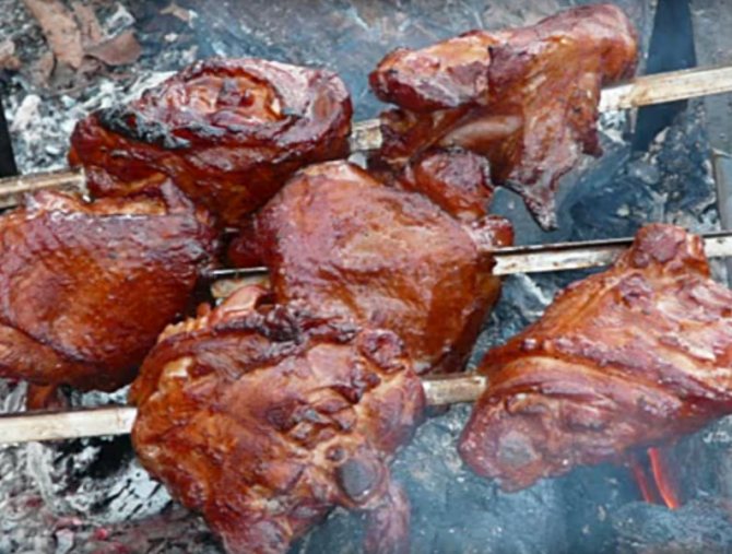 4. Посмажити звичайним способом на мангалі, подавати із хлібом та сметаною.