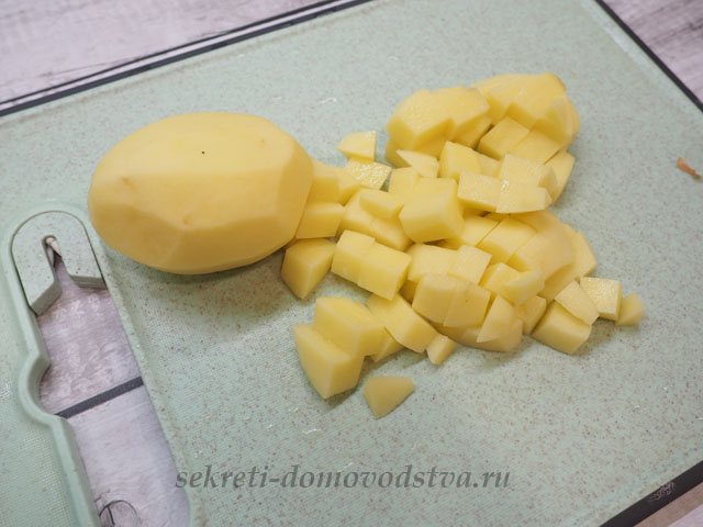 Коли маш замочений, то саме час зайнятися овочами та м’ясом. А саме наріжемо їх невеликим кубиком.