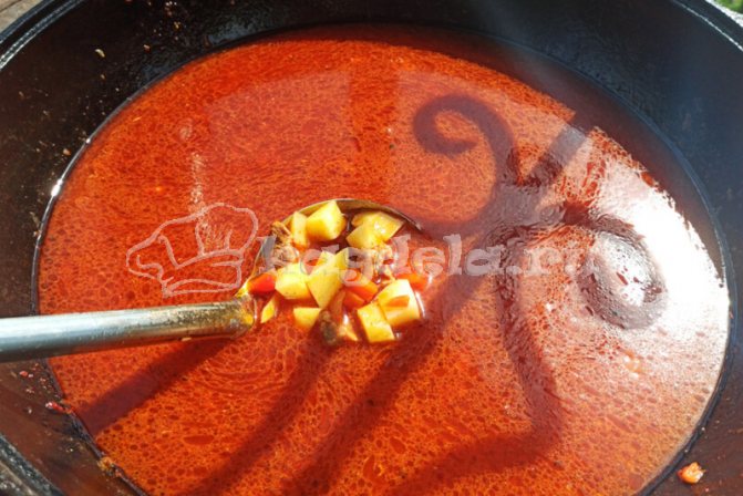 17. Накриваємо казанок і томимо страву протягом півгодини на невеликому рівні конфорки. Бульйон повинен трохи кипіти.