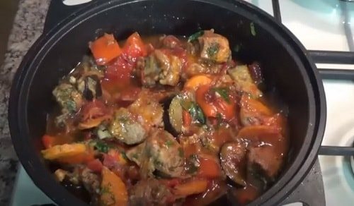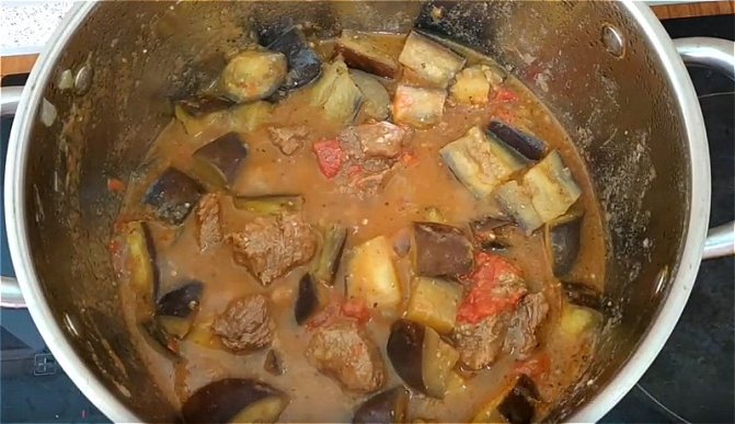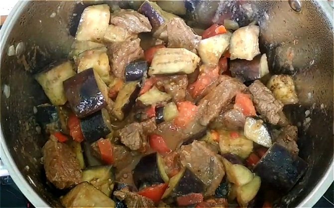 Вкусная говядина с баклажанами и помидорами