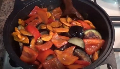 • Овощи к мясу добавляют постепенно. Сначала кладут лук и морковь, а затем уже более сочные овощи: помидоры, баклажаны, кабачки. Желательно лук и морковку обжаривать отдельно, а потом соединять с наполовину приготовленной говядиной. Тогда овощи сохранят форму и не получатся переваренными. Особенно это актуально, когда говядина старая и требует длительной тепловой обработки.