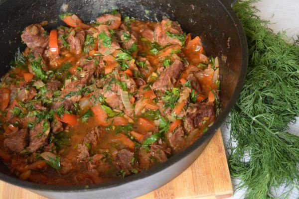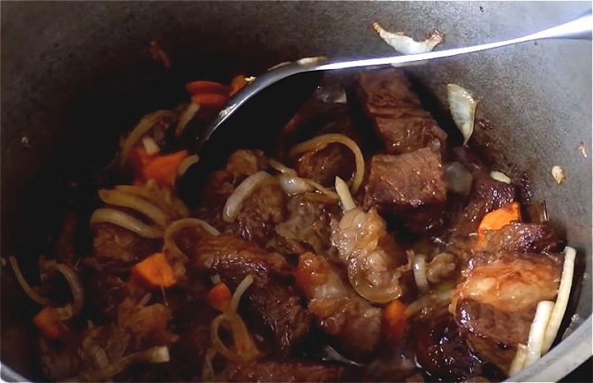 Изготовление тушеной говядины в горшочках: