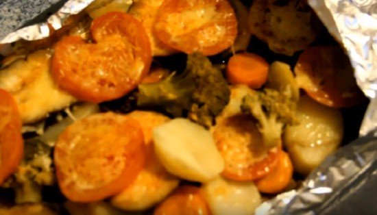 Для любителей вкусного, а главное полезного обеда или ужина, этот рецепт просто находка. Ведь фольга при приготовлении не дает мясу напрямую контактировать с огнём. За счёт этого мясо не теряет свои питательные вещества и получается сочным, так как готовится в собственном соку. К данному блюду больше подходят любые овощи. Особенно порадуются дачники, ведь все овощи есть на грядках. Итак, поехали!