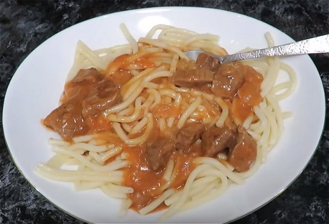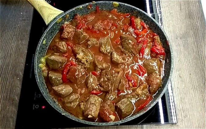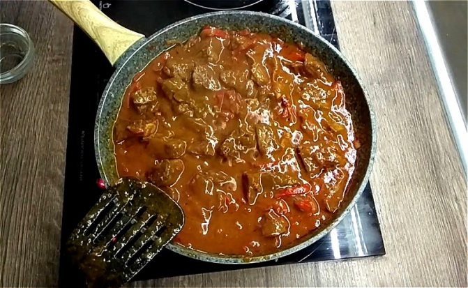 Говядина тушеная с подливкой из томатной пасты