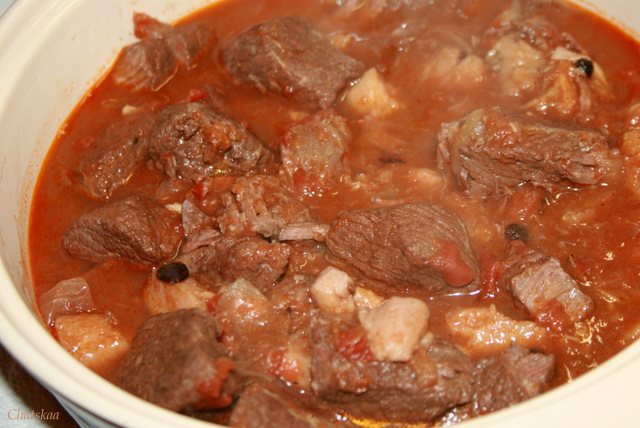 • Котел поставити на дуже повільний вогонь приблизно на 1,5 години. Саме стільки часу мені знадобилося, щоб блюдо було готове.