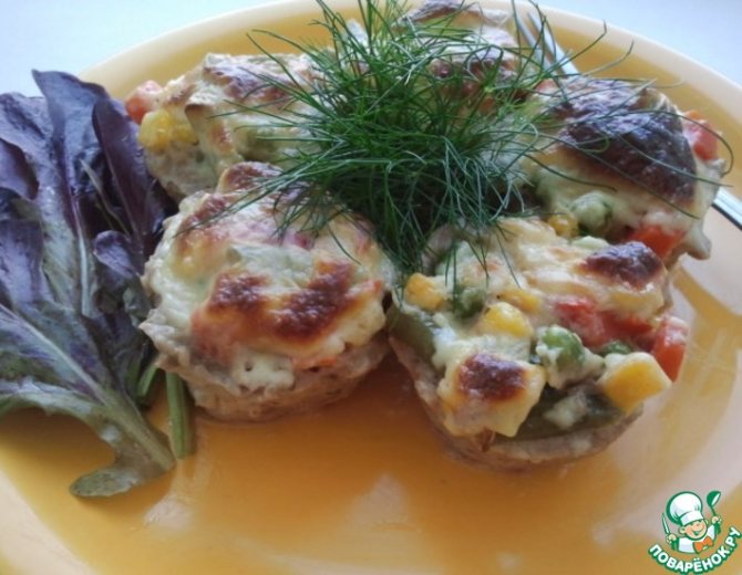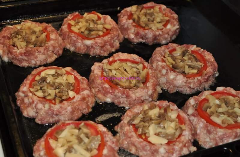Рецепт 4 кошики з фаршу з грибами та сиром